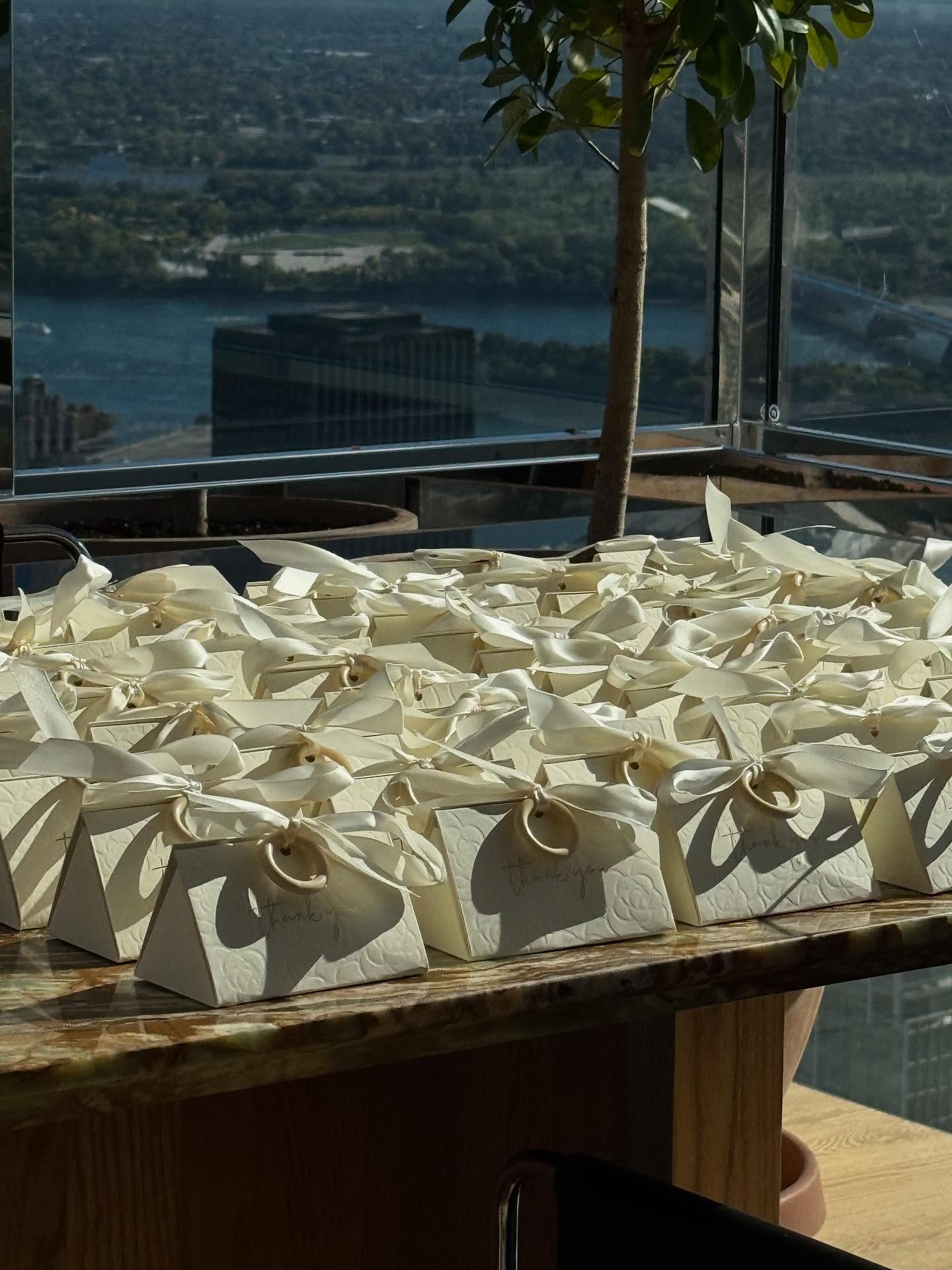 One of the most striking examples of Cathcart’s potential was a wedding coordinated by our planner partner Vows by Berryman, led by Jazmine Berryman with floral design by Sarah of Flourish & Knot. The ceremony took place on the Place Ville Marie esplanade, framed by panoramic city views, before transitioning into a refined yet energetic reception inside Cathcart. From soft, seasonal arrangements to sculptural installations framing the ceremony, the florals brought warmth and texture to the space, beautifully complementing the modern urban setting. The result was a wedding that felt intentional, elevated, and deeply personal - perfectly showcasing how Cathcart enhances every moment of the day.